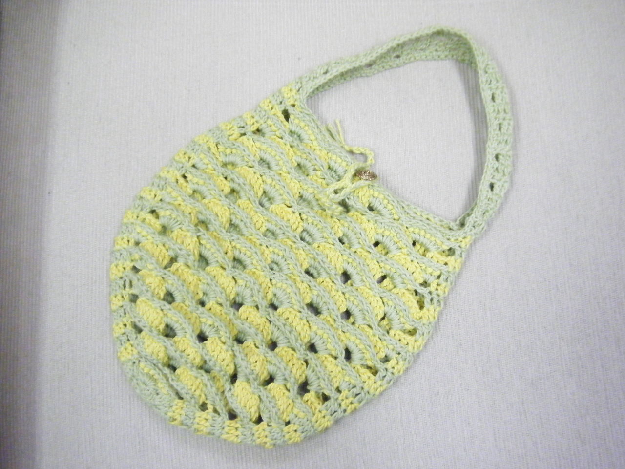 かぎ針編みがとってもお上手ですが、どうしても編み地が固くなるクセがあります。今回バッグを編むことでそのクセが生かされました!しっかり編み上げたバッグです。