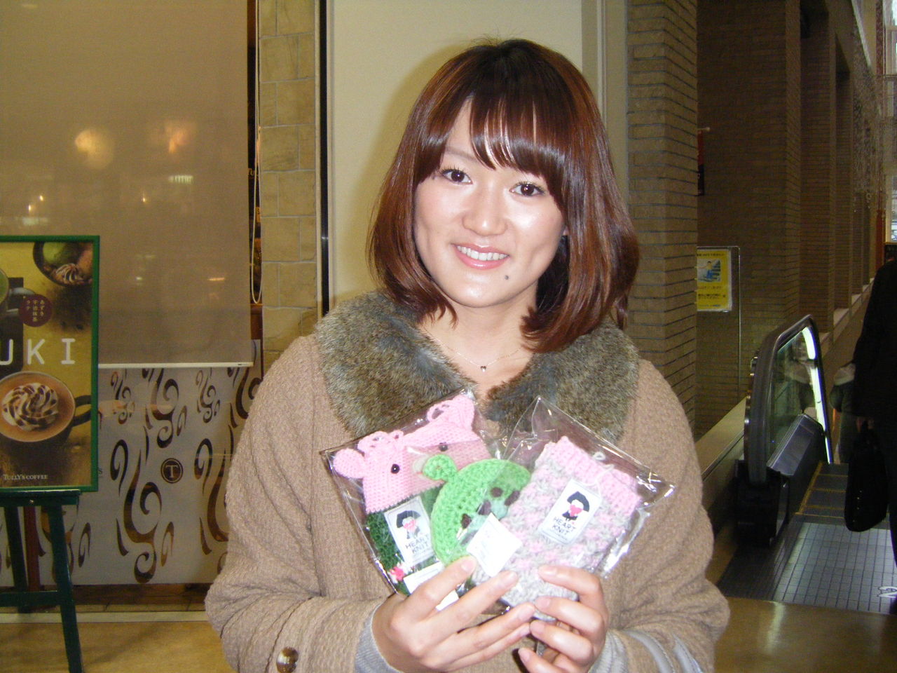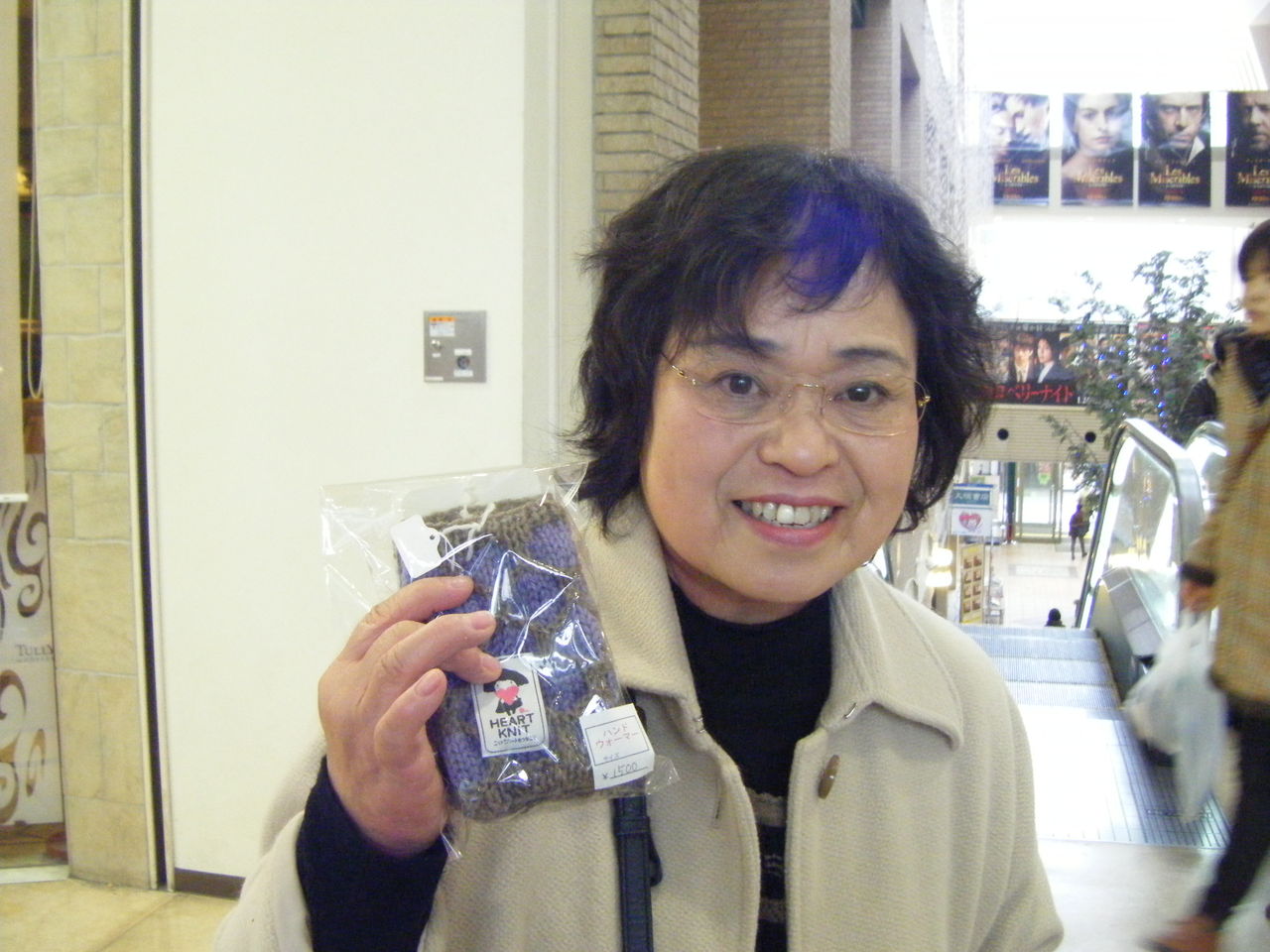看板商品でもあるスリムマフラーをお買い上げいただいた女性(お写真は断固拒否されました^_^;)、