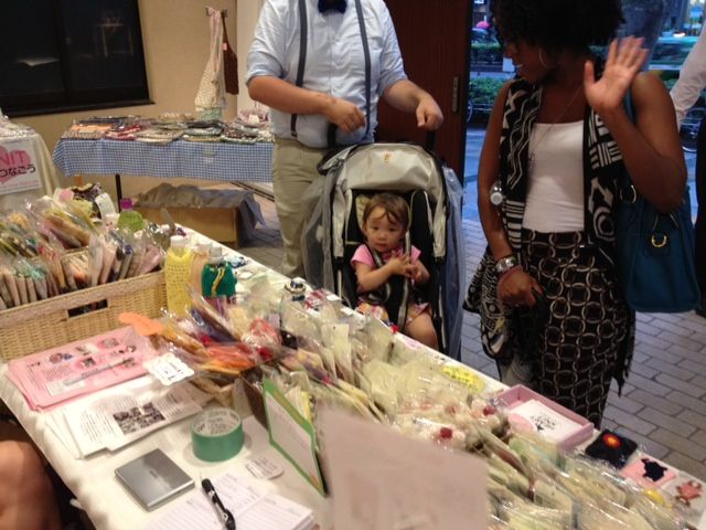 スタートの時点で販売ボランティアは二人。たまたま私と友達の二人。二人で呼び込むフレーズを考えてみました。