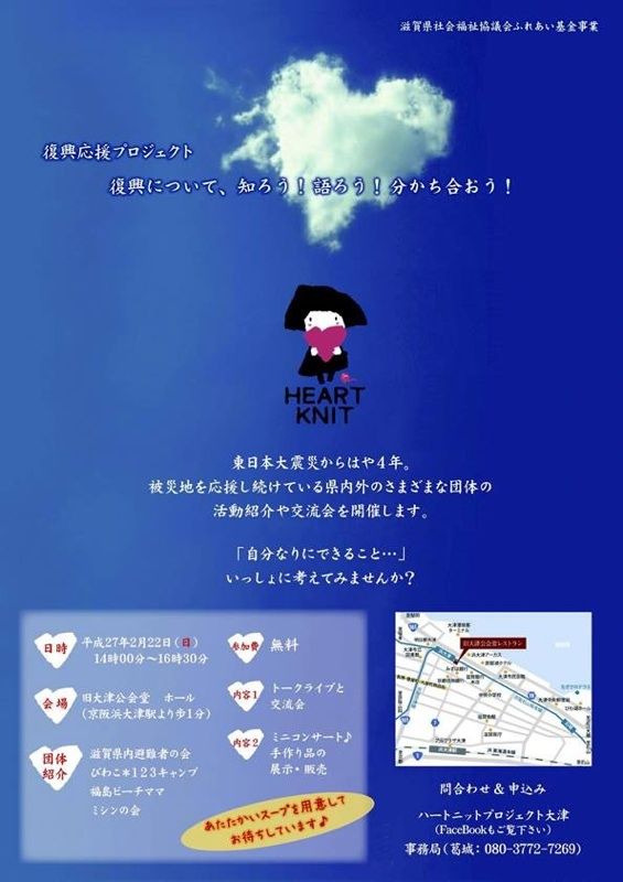 この販売会は、県外では初めての取り組みとなります「コレカラ Colle Color」(ハートニットも所属している復興グッズを制作販売している団体です)の合同出展です。是非お出かけ下さい。