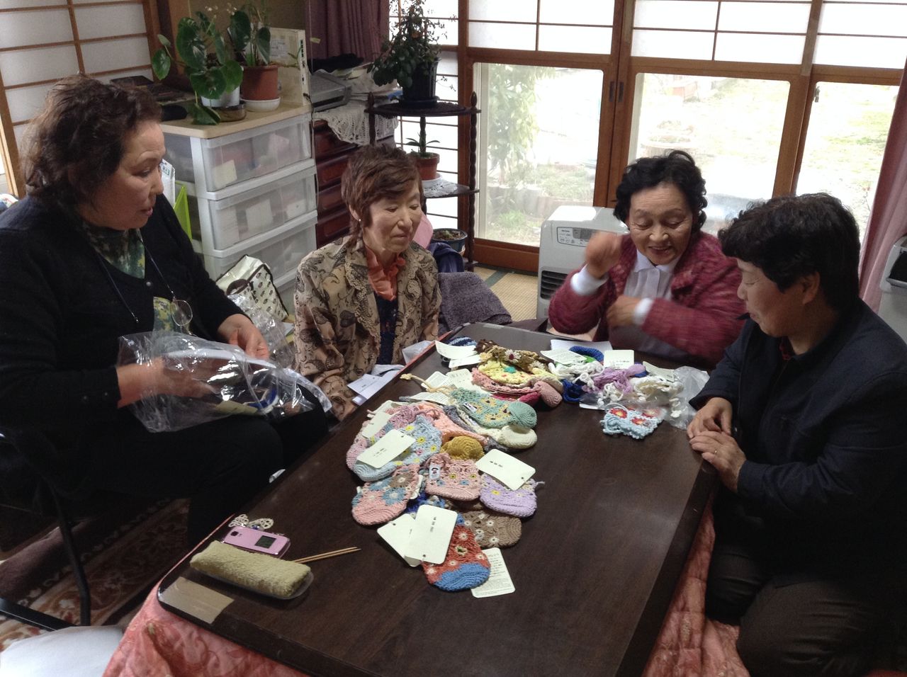 山田地区には高齢の方もおられます。本来はおばあちゃまとしてご家族と一緒に暮らし、ご自身は無職だった方が、震災を機にニット作者としてお仕事を始められたことになります。