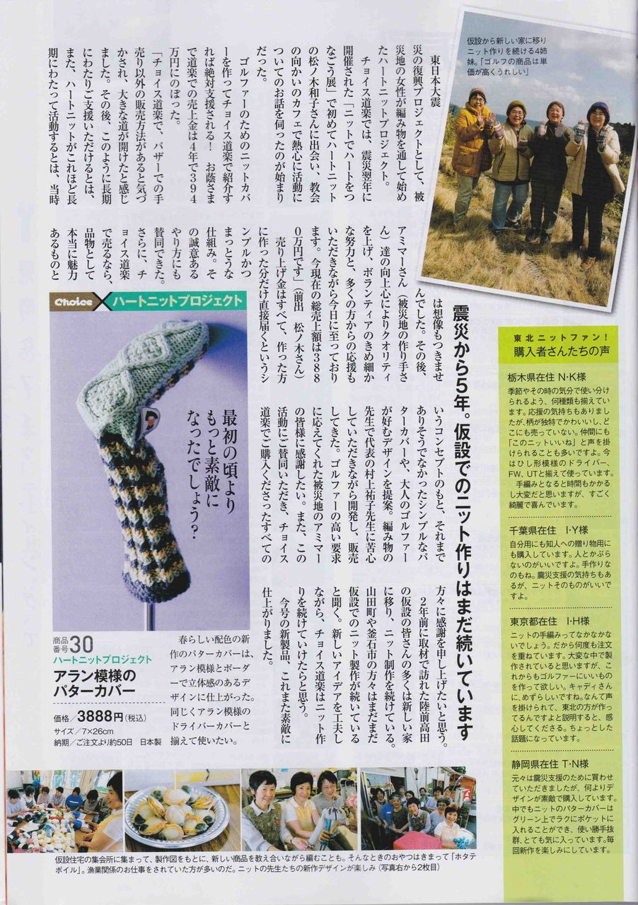ゴルフダイジェスト社の「チョイス」春号にハートニットの新作パターカバーが発表されました。
