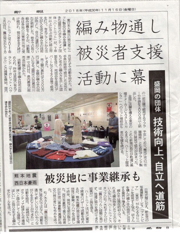 2011年震災直後に集まった「(旧)かながわ災害ボランティアネットワーク」にてハートニットプロジェクトの紹介をしたところ、「ハートニットプロジェクトかながわチーム」ができ、サポートの方法を試行錯誤しながら、様々な場での販売会に参加したり、糸の整理やニットカフェを行なったりして参りました。