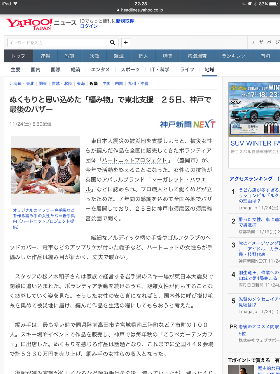 今、約100名のボランティアメンバー登録時のお一人お一人のメッセージを読み返し、「ニットでハートが繋がってきたこと」を実感しております。