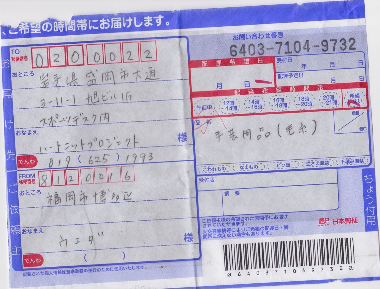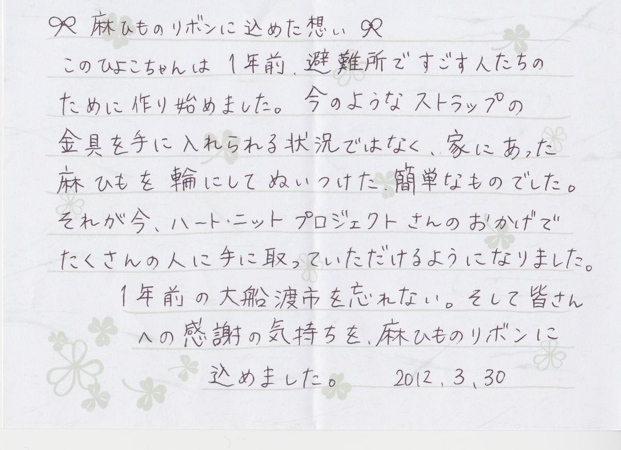 被災地から頂くお手紙、毛糸のお届けと共に頂くお手紙。
