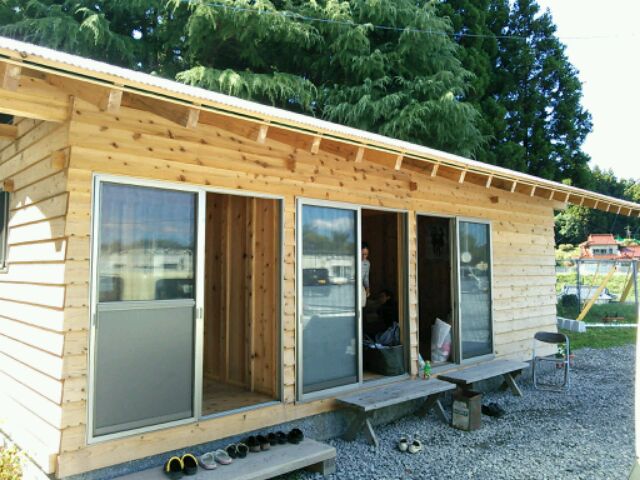 仮設住宅が並ぶ敷地の一角、気仙大工さんの作という建物にお邪魔すると、アミマーさん達がせっせと納品前の作業をされていました。