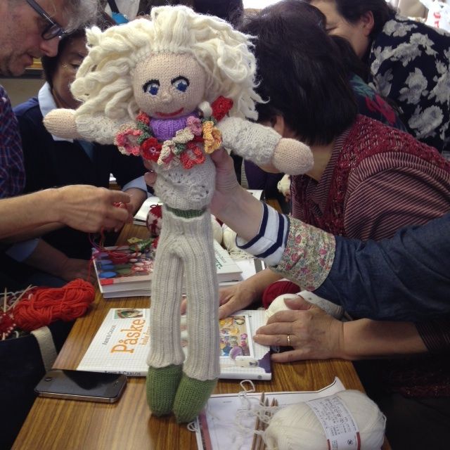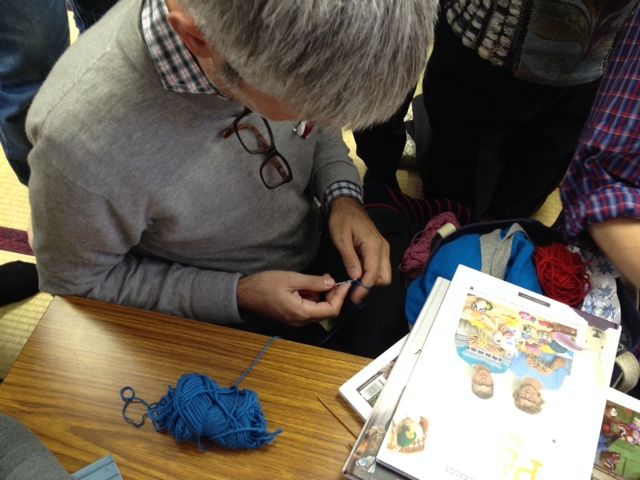 ところが、「一緒に編みましょう!」と、早速鞄の中から毛糸と編み針を取り出して、今回の課題の「クリスマスボール」の編み方のコツ等を教えて下さいました。